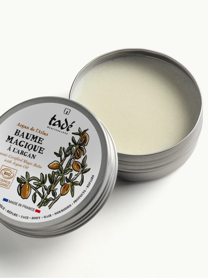 Magical balm with Argan from the Atlas, certified organic COSMOS ORGANIC. For face, body & hair that it nourishes, hydrates, protects.